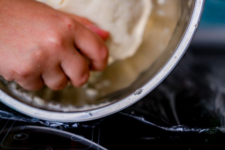 Lo primero que tienes que saber es que esta masa no se parece en textura a la masa de pan o de repostería. Sabrás que la masa está lista cuando consigas hacer una bola de masa sin que se pegue a las paredes del bol ni a las manos.