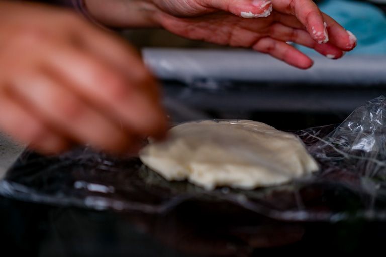 Ya tenemos la masa, ahora viene la parte de darle forma a las arepas.