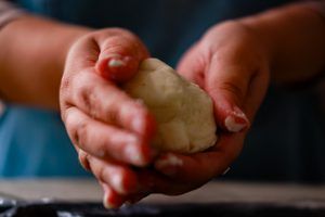 - Cogemos un trozo de masa del tamaño de tu mano.
